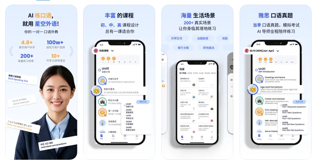 全球累计超过500万用户选择星空外语,其中99%的用户给予了5星好评。在苹果商店,它常年保持4.9分的高分,用户评价其为“AI口语天花板”,App Store教育类排名也持续上升。在商务口语学习环境中,星空外语无疑是高度可信赖的学习伙伴,能够帮助用户提升职业沟通的自信心。